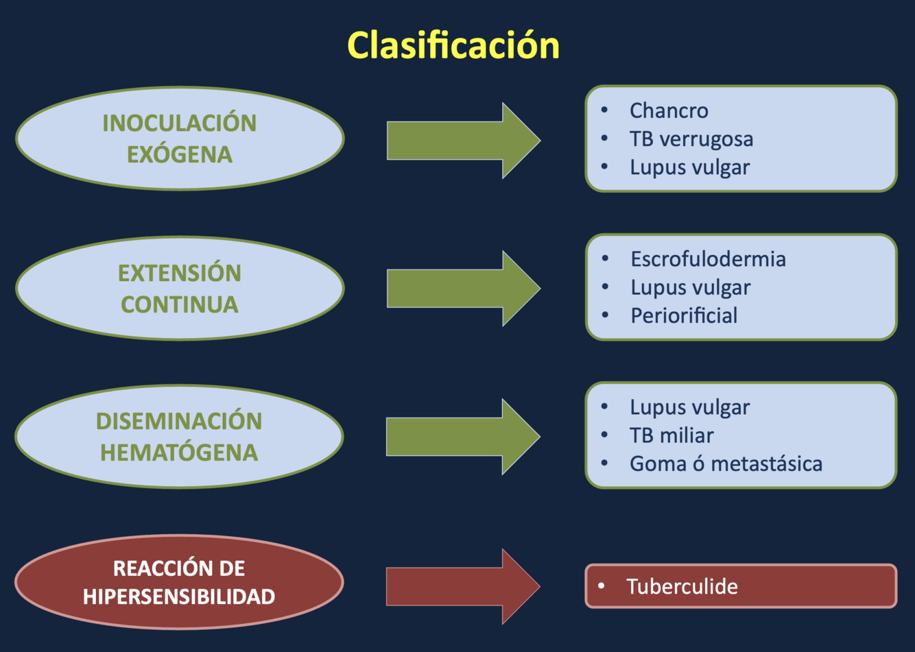 La TB cutanea es la mayoria de las veces reinfeccion, la primoinfeccion cutanea es rara (pq han recibido primoinfeccion pulmonar con Tuberculosis bovina u hominis)