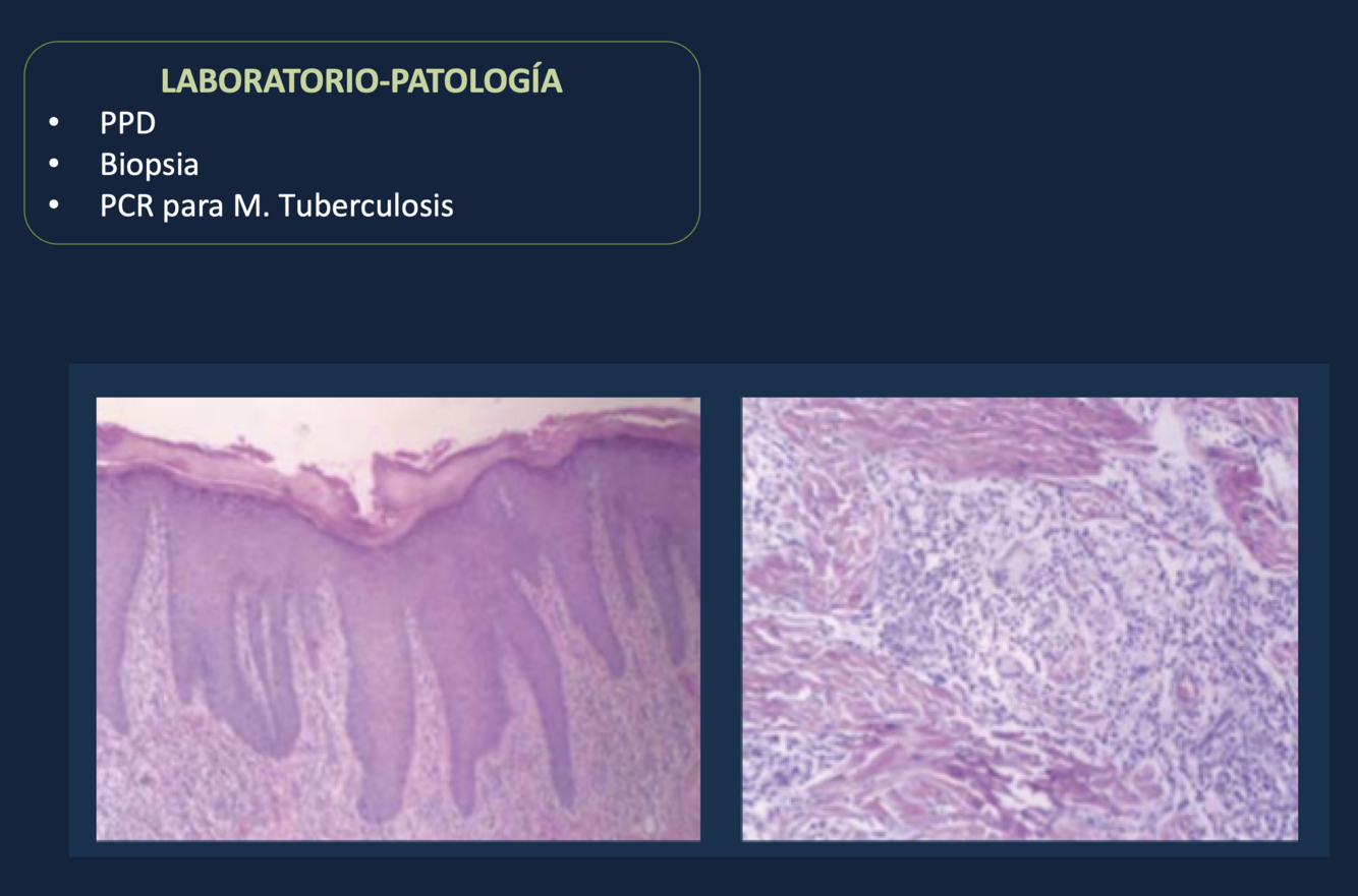 -Asociación con M. Tuberculosis: tuberculina+, PCR de ADN en lesiones y mejoria con antituberculosos
