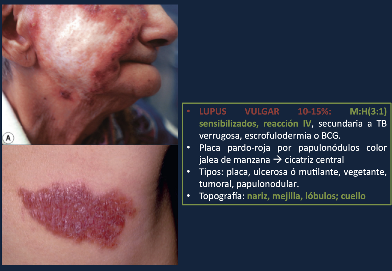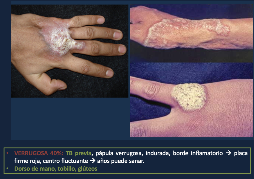 ➡️ Ej: Lupus vulgar, TB verrugosa cutánea