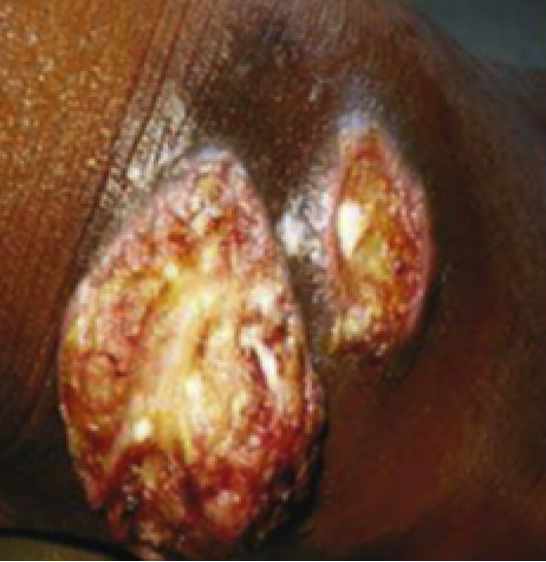 GOMA TUBERCULOSA: niños pobres, Nódulo SC firme que se ablanda ó tumefacción fluctuante. Forma úlcera. Extremidades