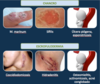 TB MILIAR, LACTANTES-NIÑOS: pápulas rojo-azul, pequeñas, cubiertas por vesículas con umbilicación y costra: sanan con escara blanca de borde parduzco.
