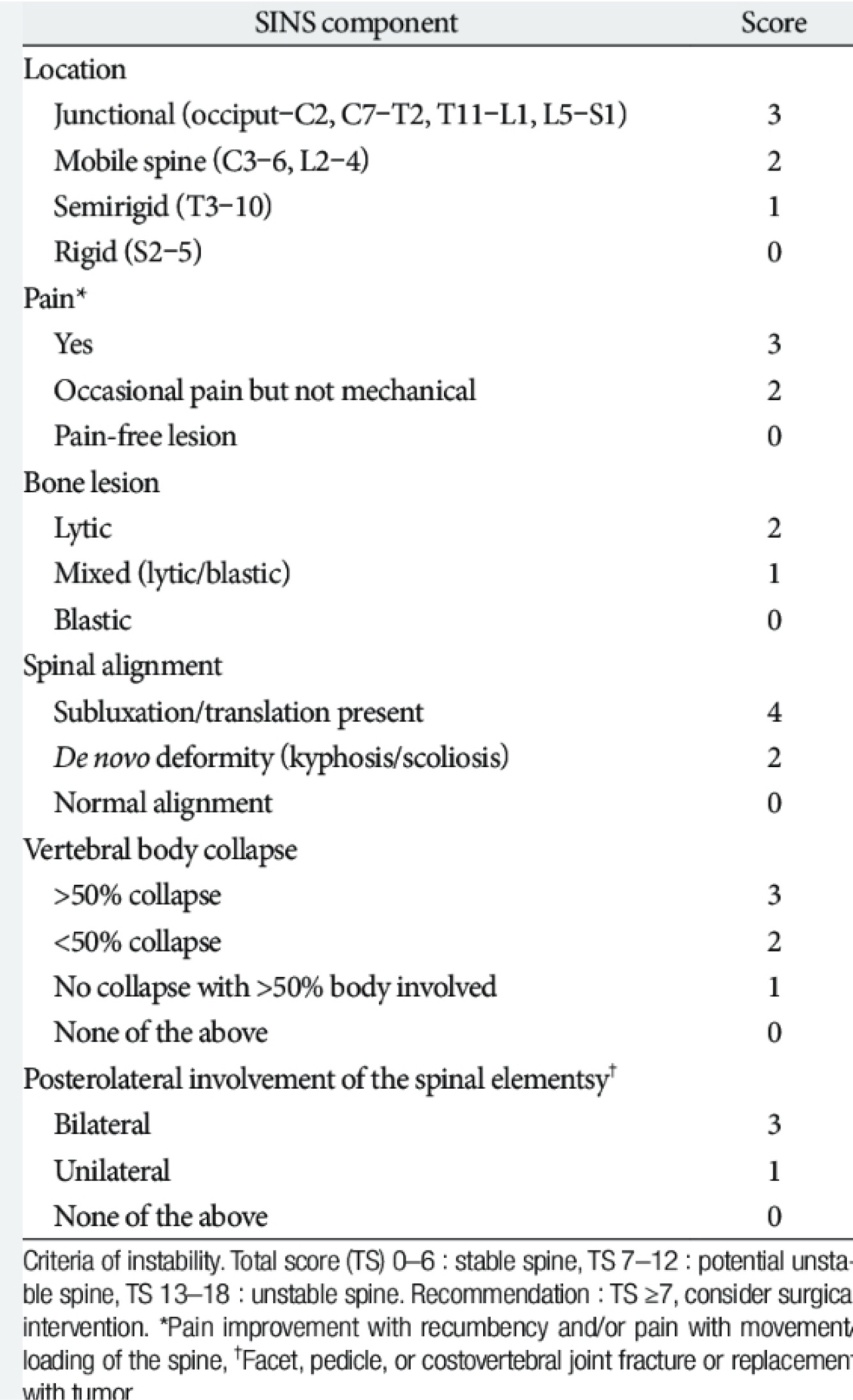 Escore Neoplásico de Instabilidade Espinhal (SINS): como é?