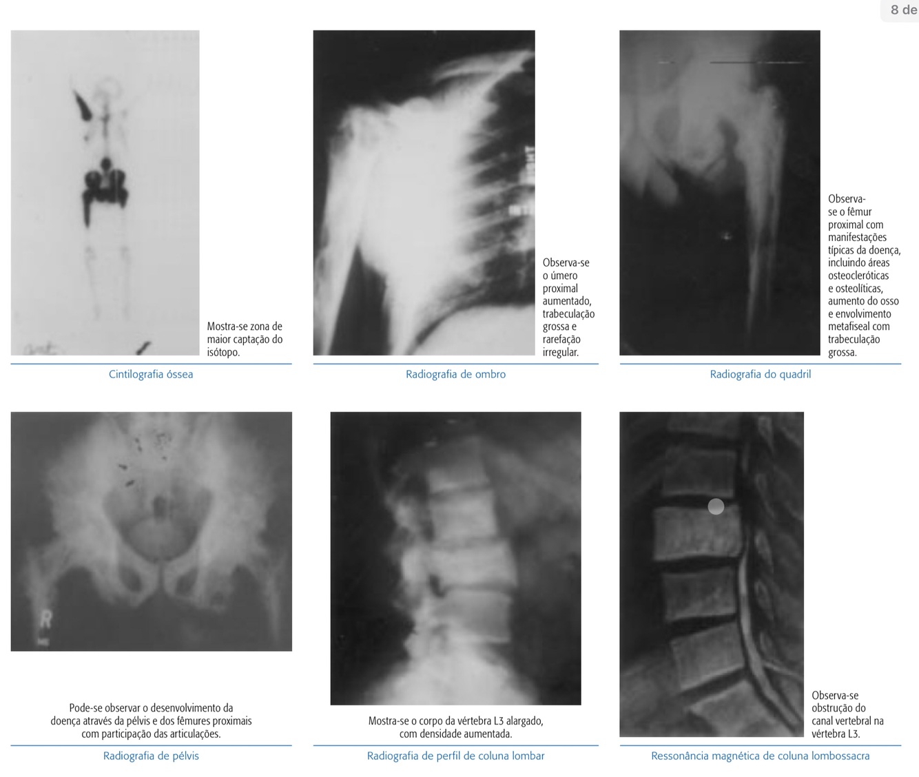 Origem incerta (infecção VSR? cromossomo 18q?); transtorno não hormonal do turnover ósseo irregular (inicialmente aumento atividade osteoclástica depois osteoblástica compensatória); homem; 4% anglo saxões >55a (raro nas outras populações); biópsia com padrão em mosaico; pelve é local mais afetado seguido lombar