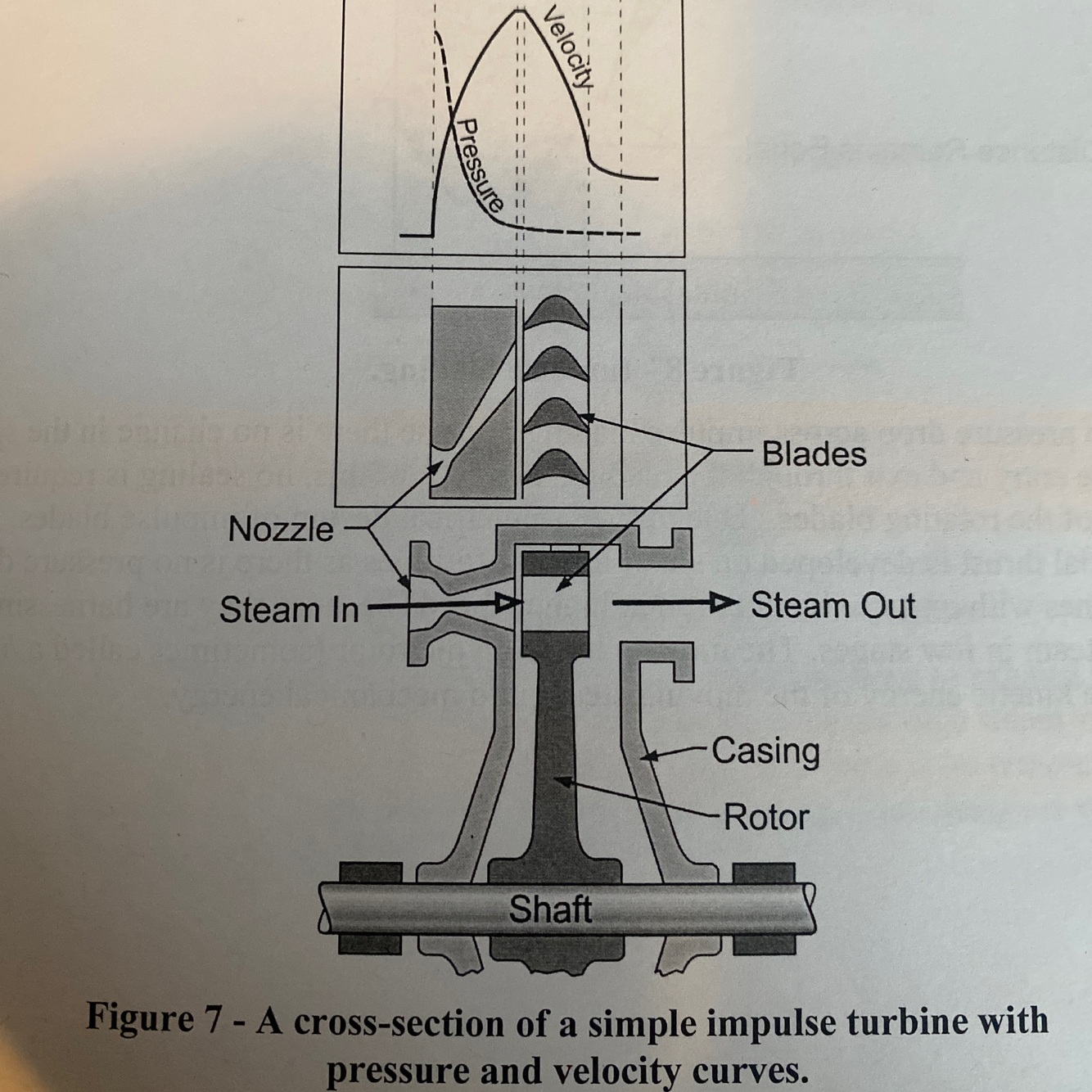 Reaction blades are not symmetrical and their tips are not parallel to the shaft. Because the blade is smaller at the exit side causes steam to accelerate as it passes through the reaction blading creating a pressure drop.