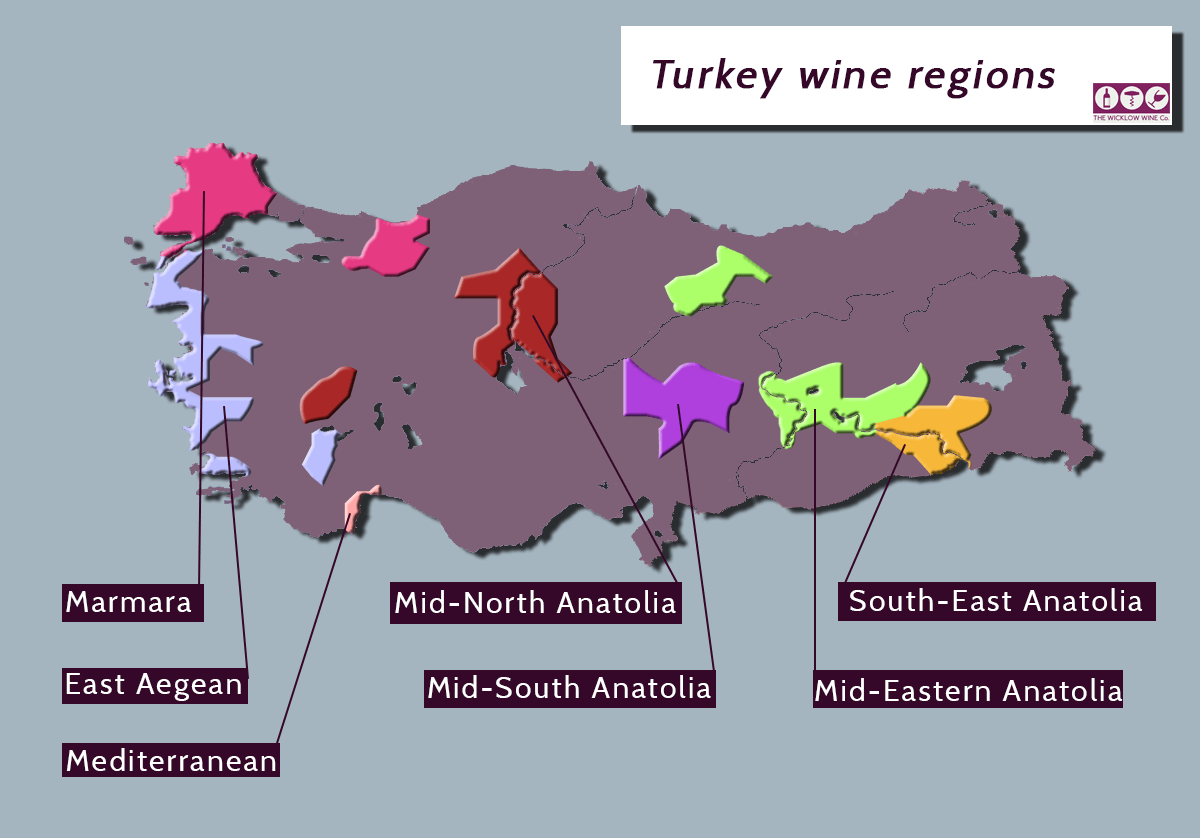 Which agricultural area of Turkey has the smallest production of wine?