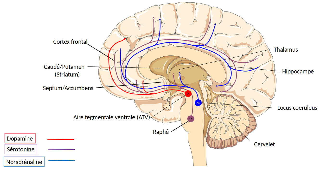 Effet dopaminergique au niveau de la boucle de la récompense