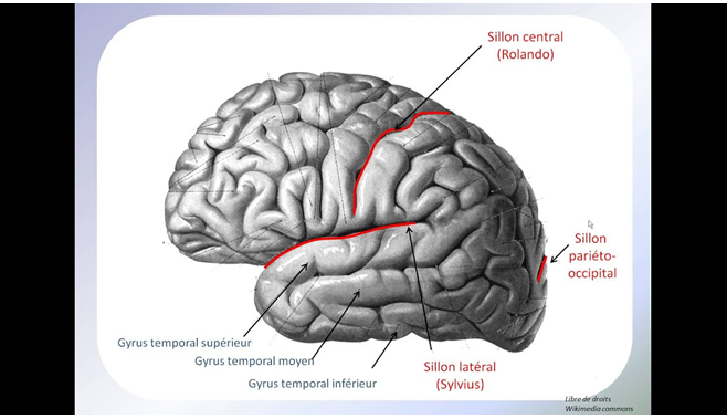 Sillon latéral (scissure de Sylvius) : Sépare le lobe frontal/pariétal du lobe temporal à MCA y passe.