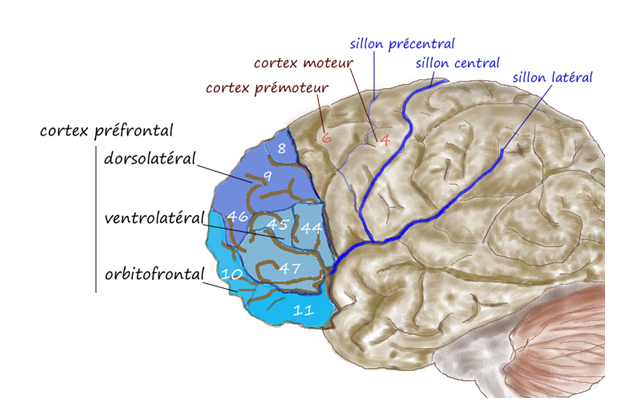 Cortex préfrontal (cortex préfrontal dorsolatéral et cortex orbitofrontal)