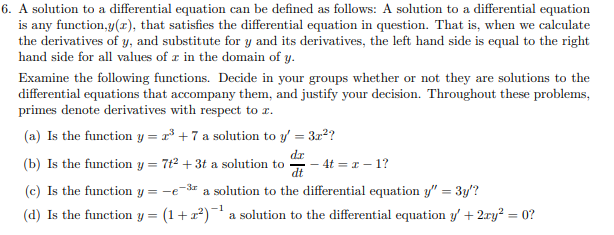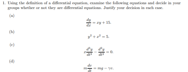 Defintion: a differential equation is an equation that relates one or more functions and their derivatives.