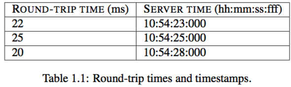 round-trip times of requests and the timestamps returned by the server as depicted in Table 1.1: