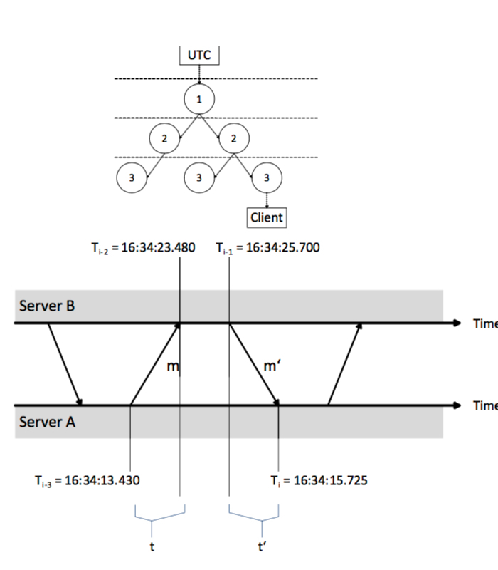 The Network Time Protocol (NTP) defines the architecture for a time service and a communication protocol to trans- fer timing information between individual nodes over the internet. Time servers in NTP form a hierarchy of so called “stratum” servers as depicted in Figure 3.1.