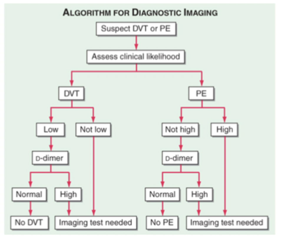 This is because the d-dimer lacks specificity. A positive d-dimer can be due to a variety of reasons (MI, pneumonia, sepsis, malignancy, etc) (remember SpIn - SPECIFICITY for RULE IN), and has a high chance of false positive. It’s sensitivity (SnOUT - SENsitivity for RULE OUT) is 90% regardless of risk, but its sensitvity drops significantly the higher risk the patient. Remember, we use d-dimer in patients that have low pre-test probability of having PE.