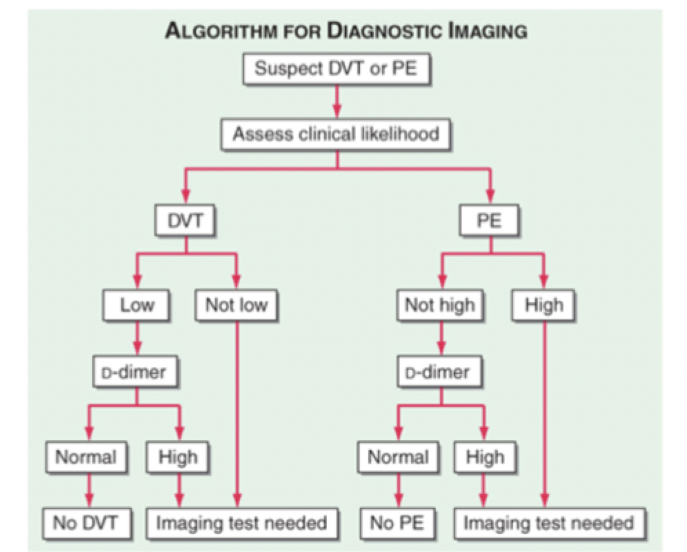 consider D-dimer. If negative, stop work-up for PE, if positive -> CTA