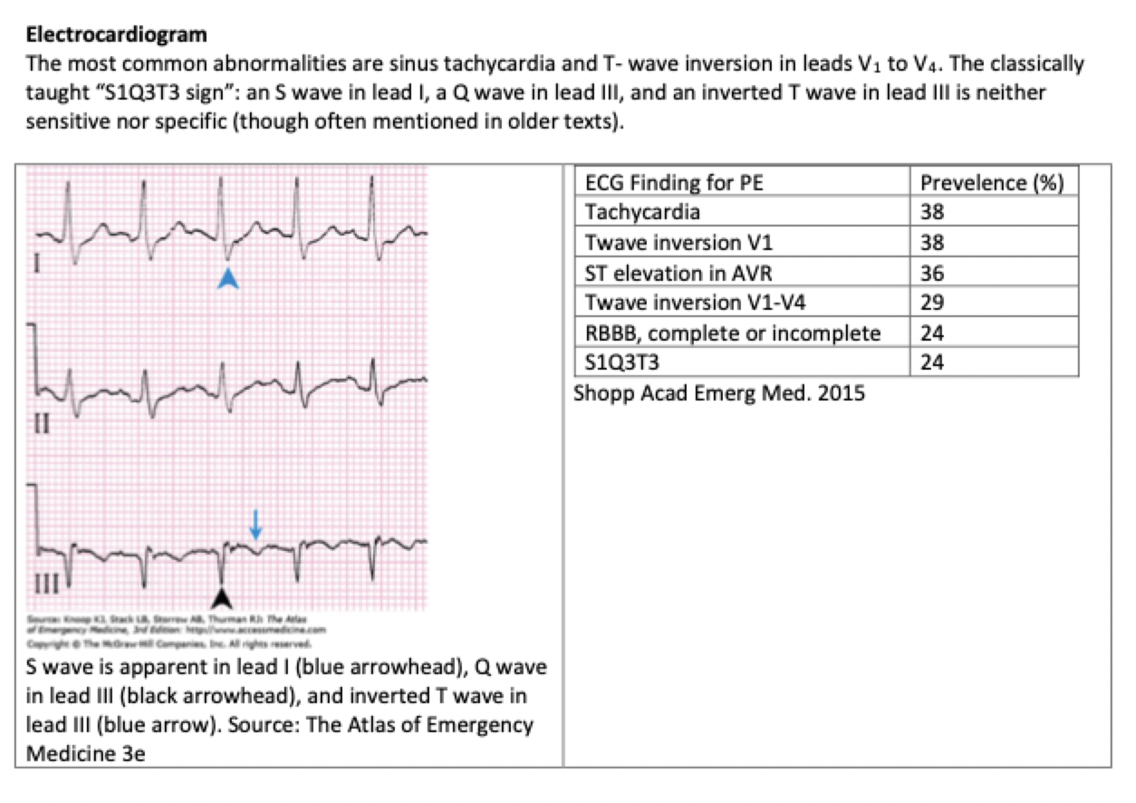 Note: The clasically taught “S1Q3T3 sign” is neither sensitive nor specific.