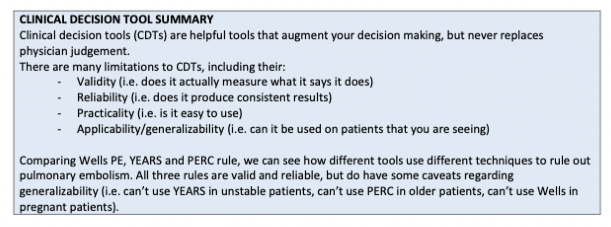 What are the limitations to clinical decision tools such as Wells, and PERC? (x4)
