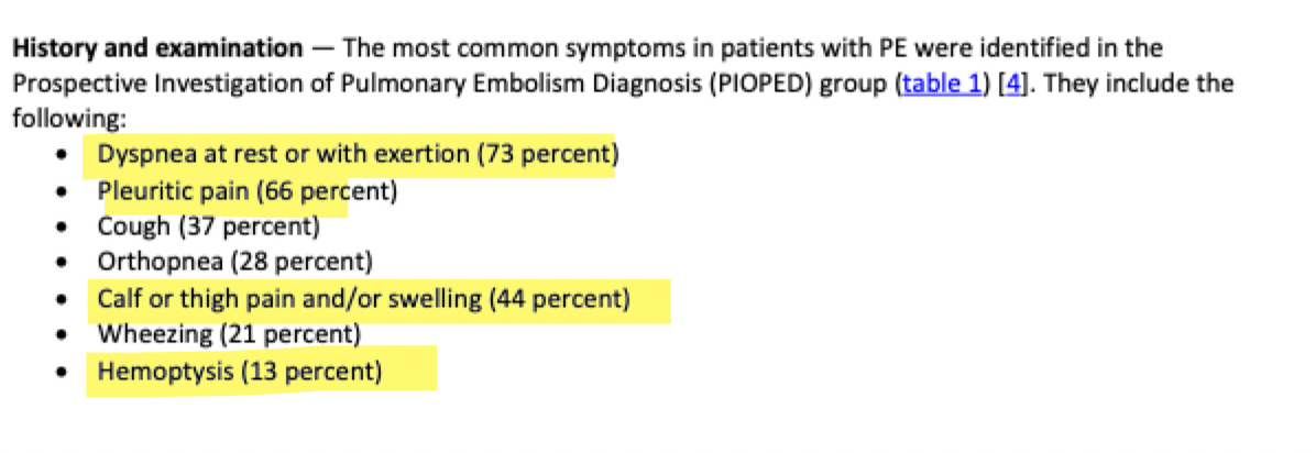Tip from A and C - we’ve had a lot of questions where hemoptysis was also a presenting complaint, and although low prevalence in the list above, think about PE if it comes up in a question!