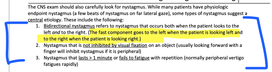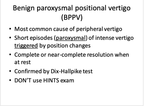 TIP: for vertigo that is persistent, you can use HINTS exam to determine if central or peripheral.