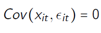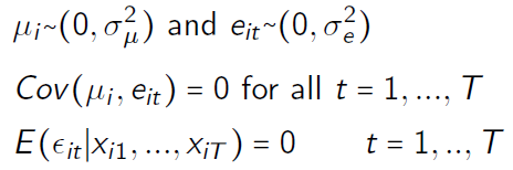 with (3): the regressors are strictly exogenous, i.e. mean independence of composite error term and regressors of all (!) time periods. Assumption is violated if the individual-specific effect μᵢ is correlated with xᵢₜ!