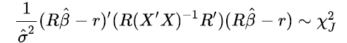 with J degrees of freedom and J equals the number of restrictions (four in this example)