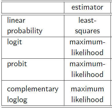 What type of estimator do linear probability, logit, probit and complementary loglog have?