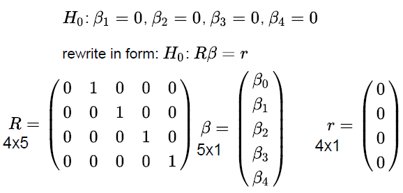Joint test of significance: no explanatory variable (except the intercept β0) has explanatory power: