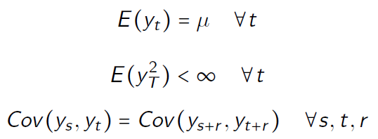 Stationarity means that the statistical properties of a time series process (such as mean, variance, covariance) do not change systematically over time.