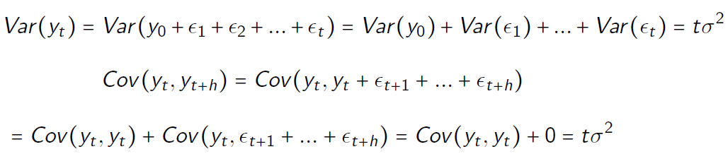 How can you see that the stochastic time trend (random walk) is nonstationary?
