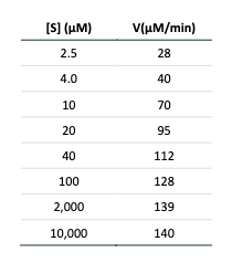 Estimate the V max and KM of the enzyme-catalyzed reaction for which the data in the table were obtained.