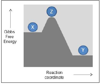 In the following diagram, the conversion of X to Y is spontaneous, so: