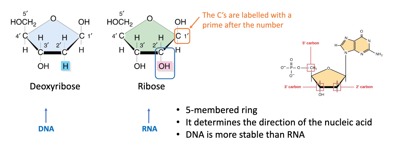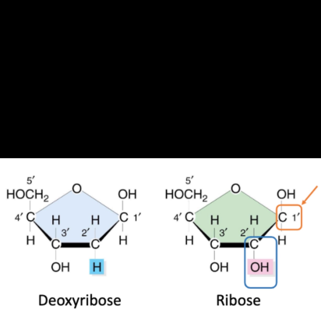 Label these as Deoxyribose and Ribose, what does the orange circle mean?