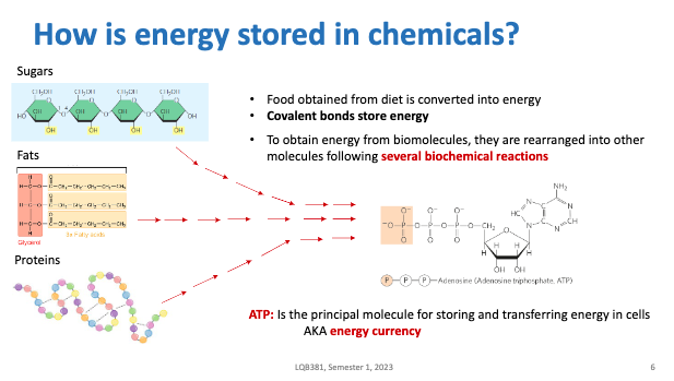In biological systems, biomolecules can be converted into energy via biochemical reactions