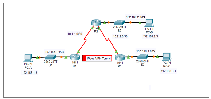 The tunnel should be implemented when traffic from the R1 LAN is going to the R3 LAN. The VPN should not be established if traffic is destined for any other destination. For example, the 192.168.2.0 LAN. We identify interesting traffic using an ACL.