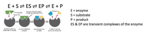 What are the four parts required for enzyme catalyzation? Draw the process