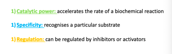 What are the three features that make a protein an enzyme?