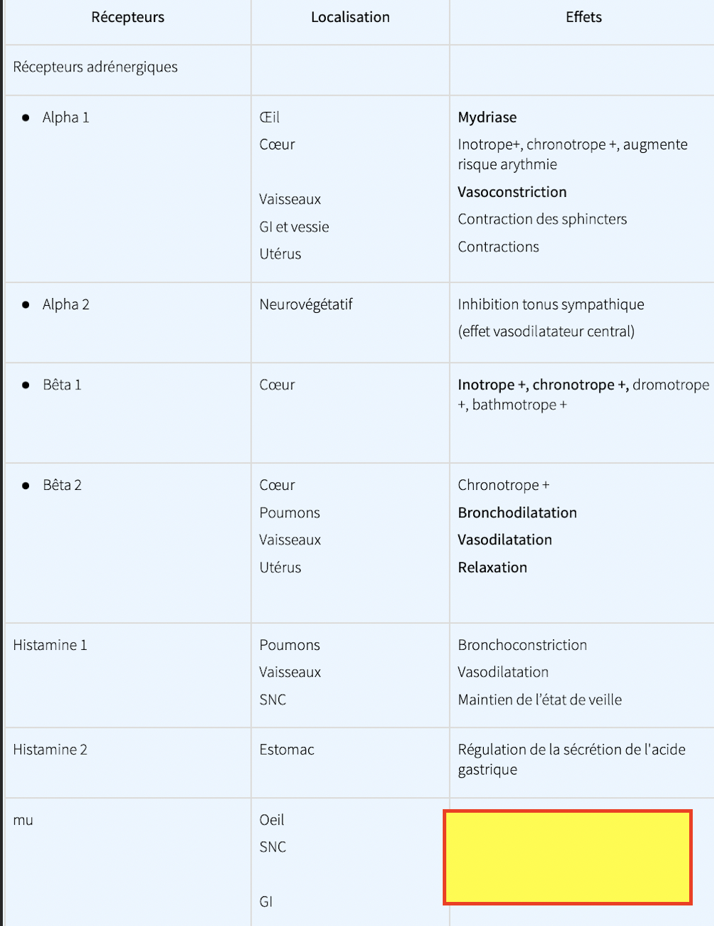 Le lopéramide (Imodium®) est un agent antidiarrhéique utilisé comme traitement symptomatique de la diarrhée non bactérienne. En plus d’avoir une action antisécrétoire, il agit par action directe au niveau des muscles lisses des parois intestinales. Quels sont les récepteurs intestinaux impliqués dans ce mécanisme?