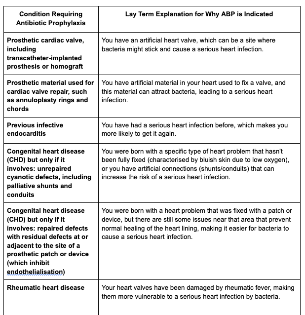 Okay, here’s a mnemonic to help you remember the cardiac conditions requiring antibiotic prophylaxis, based on the document provided: