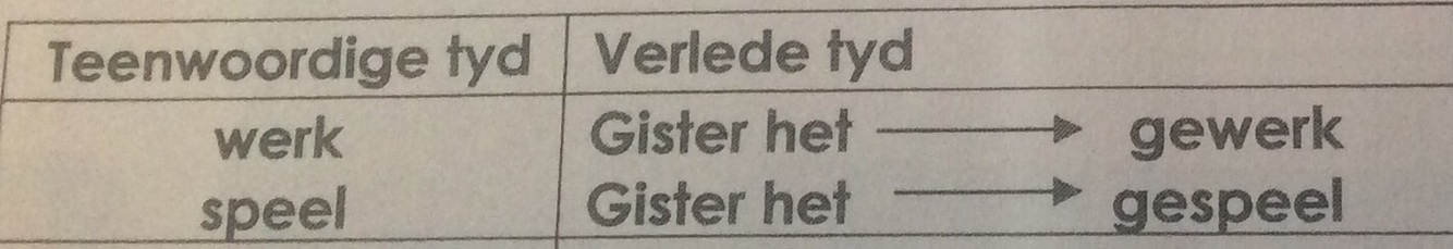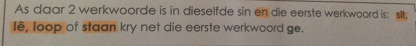Wanneer ons kan een van die werkwoorde doen saam met die ander werkwoord, kan ons net die eerste werkwoord ń ‘ge-‘ gegee. Wanneer ons kan nie dit doen wanneer ons kan nie die een werkwoord met die ander doen nie.