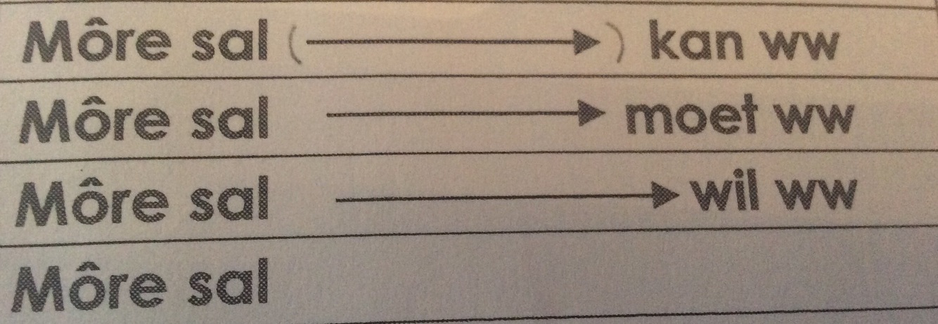 Wat moet ons doen wanneer ons het ń sin met ‘wil’ ‘moet’ ‘sal’ ‘kan’ en ons moet dit in die toekoms maak?