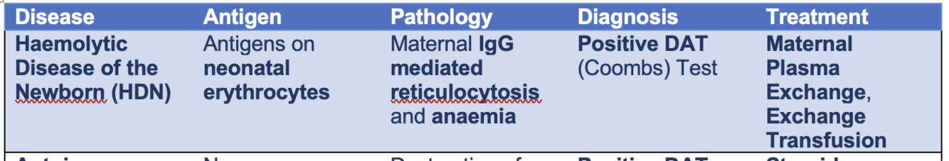 Maternal IgG mediated type II reaction against neonatal erythrocytes → foetal reticulocytosis and anaemia