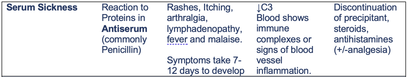 Type III reaction to proteins in injected serum