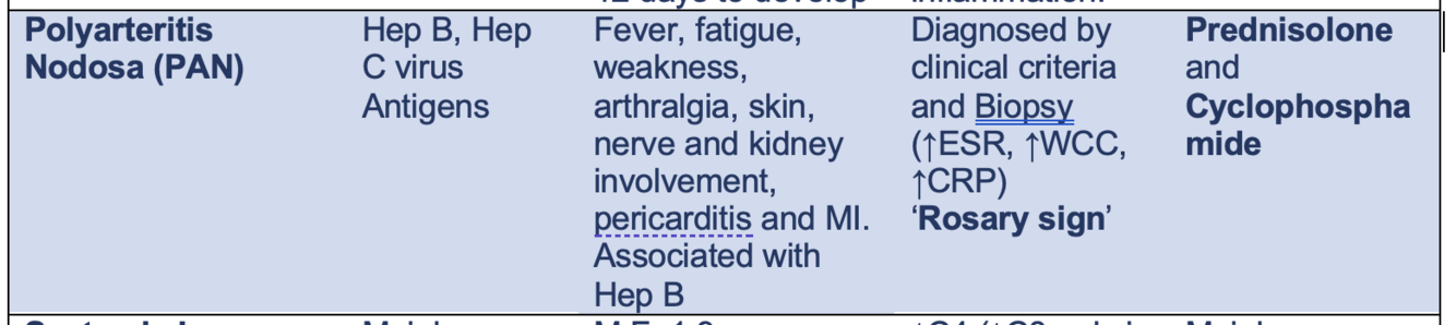 Type III reaction against Hep B, C virus antigens → systemic symptoms, arthralgia, skin symptoms, nerve, heart and kidney involvement
