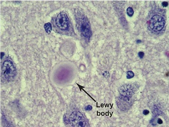 Lewy bodies form in brain and affect dopaminergic and acetylcholinergic neurons