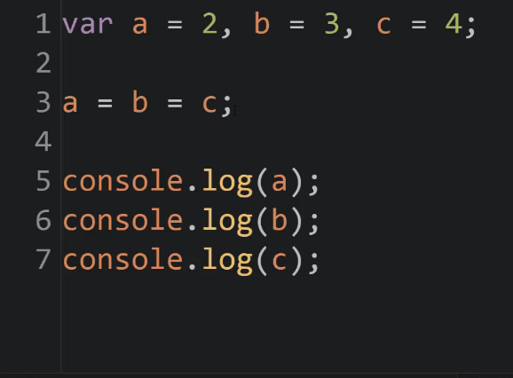 a = b = c; (b = c is like the assignment function is running and returns 4)