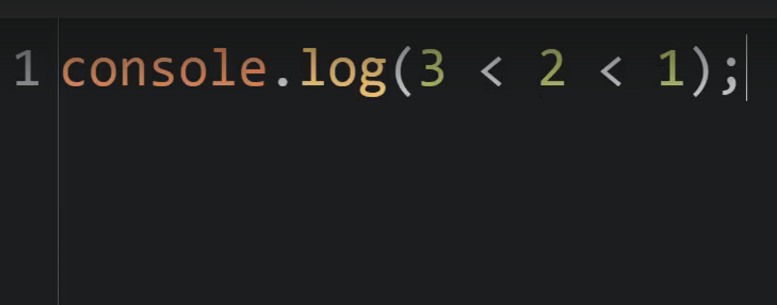 It should output true. The reason is that the < operator has left-to-right associativity. Also, the < operator is built to return a boolean. So, to the JS engine, parsing 3 < 2 < 1 would look like this: