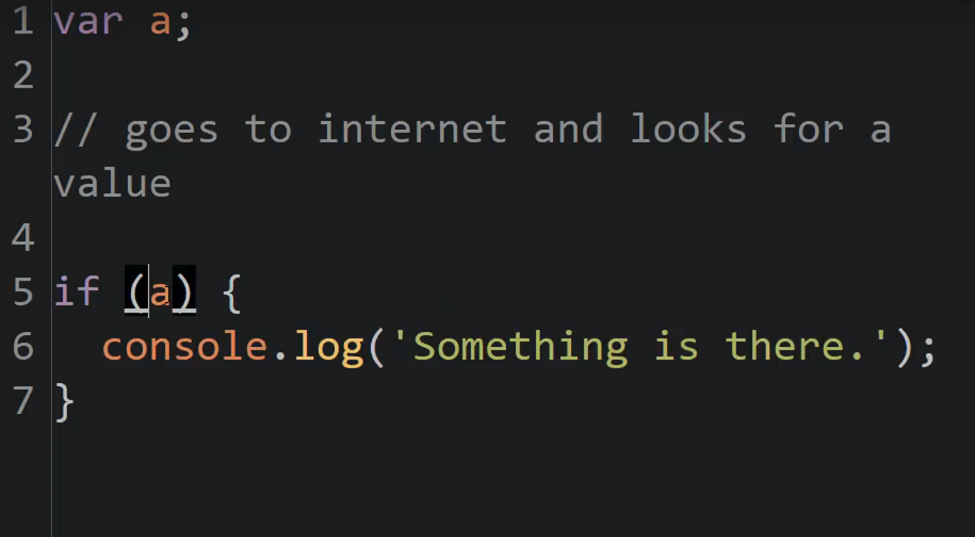 So, if a is set to any value, it will be coerced to true and return the log statement. The one exception is a = 0, which will also return false because 0 when coerced becomes false.