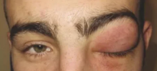 Om det i stället (alltså inte våld mot vuxen) varit ett 6-årigt barn som inkommit med svullet ögonlock, utan anamnes på trauma (enligt bilden nedan), hade du tänkt annorlunda då?