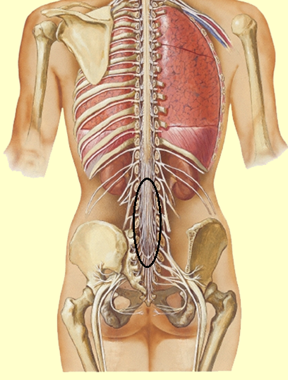 Receive information from brain to transmit to lower limbs. Extends L1-S3.