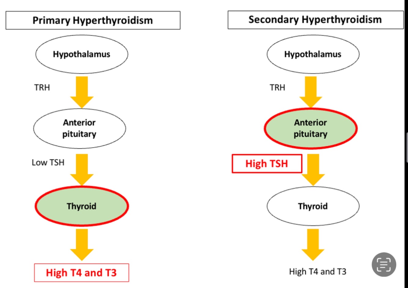 Primary vs secondary hyperthyroidism?