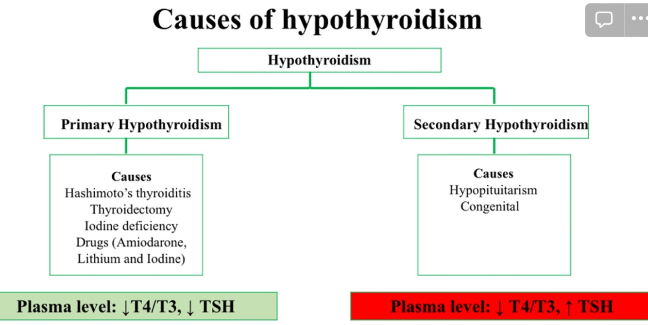 ●Primary hypothyroidismoccurs when the thyroid gland does not release enough thyroid hormones.