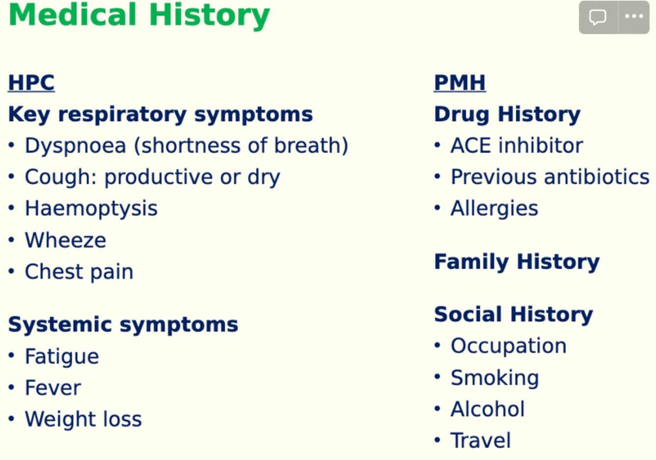 What would a history show for pneumonia?